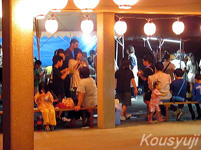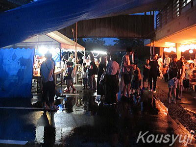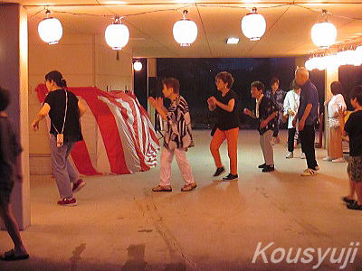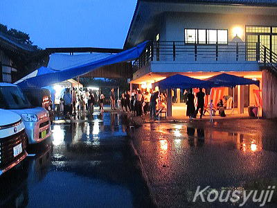 恒例の盆踊り大会は、雨のため、初めて門徒会館下に会場を設営して行われました。